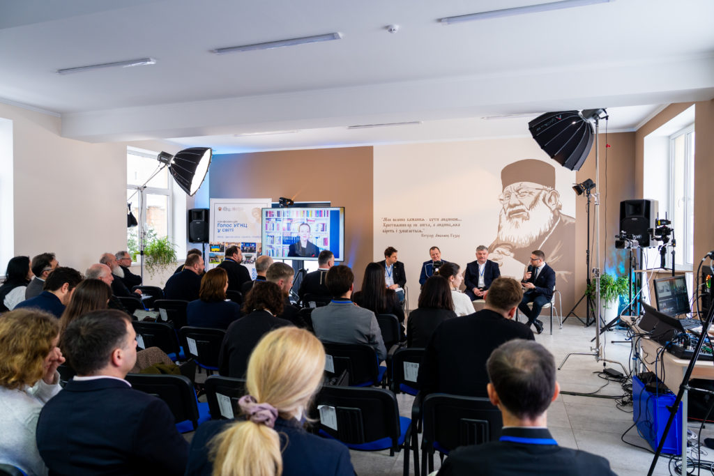 Модератором дискусійної панелі виступив Дмитро Шеренговський – проректор із зовнішніх зв’язків та суспільного служіння УКУ.